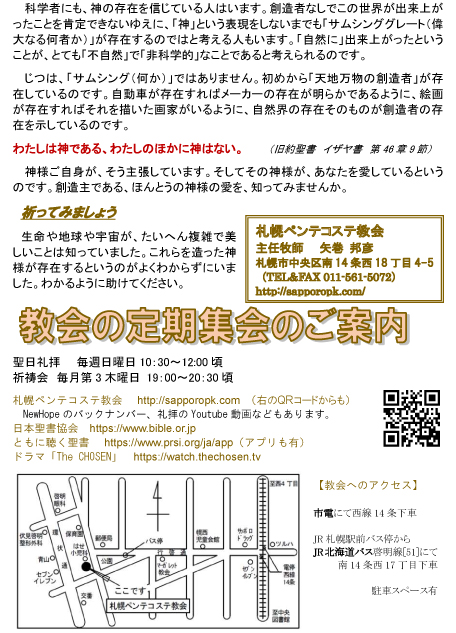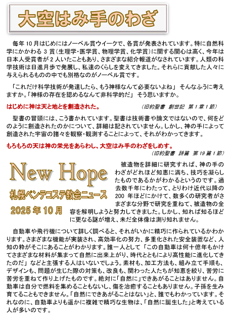 NewHopeとは、毎月一度、教会の近隣に配布しているものです。